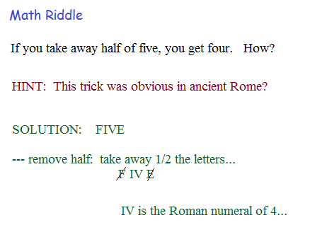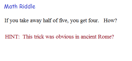 Math Riddle: If you take away 1/2 of five, you end up with four. How?