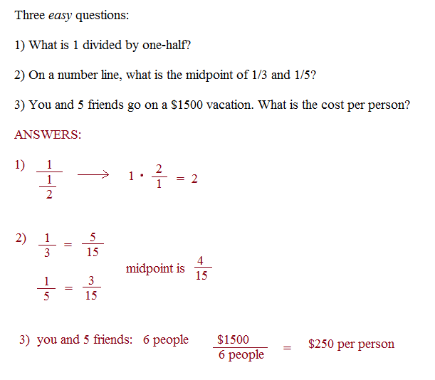 3) You and 5 friends go on a $1500 vacation. How much is the cost per person?