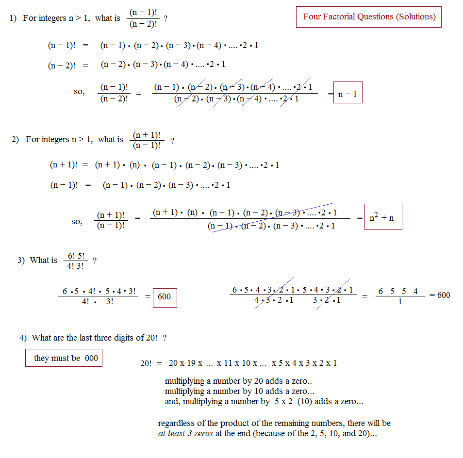 1) For integers > 1, what is (n - 1)! / (n - 2)! ?