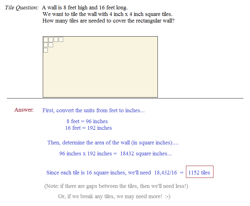 We want to tile this wall with 4 inch by 4 inch square tiles.