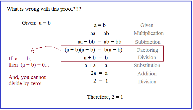 If a = b, then 2 = 1 ???