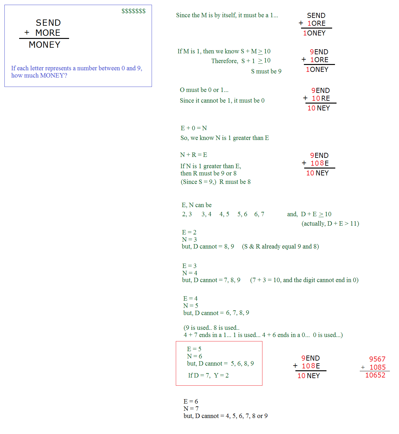 If each letter represents a unique number between 0 and 9, how much money?