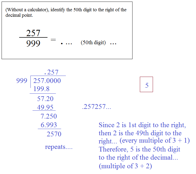 (Without a calculator) can you determine the 50th digit to the right of the decimal point?